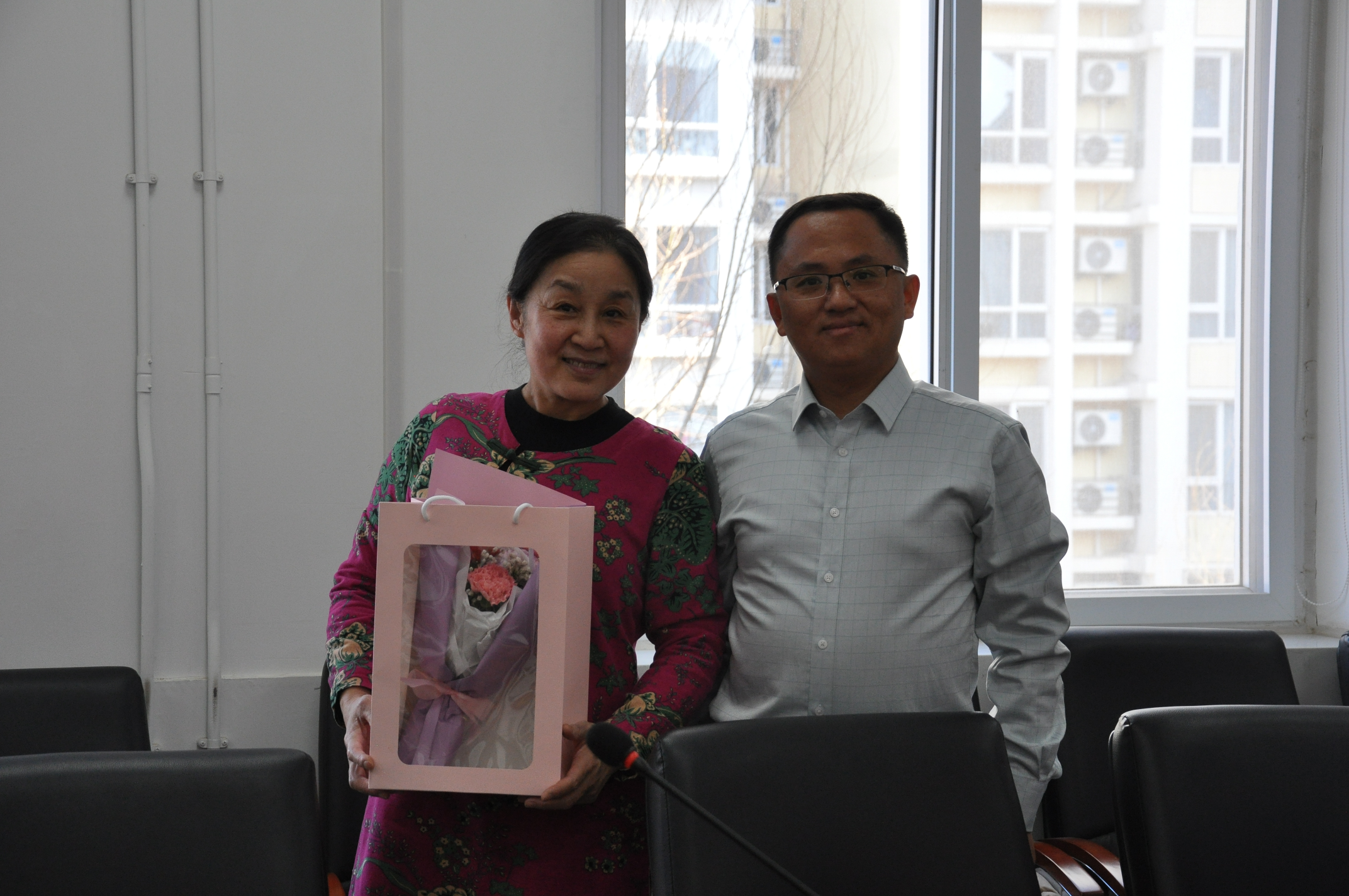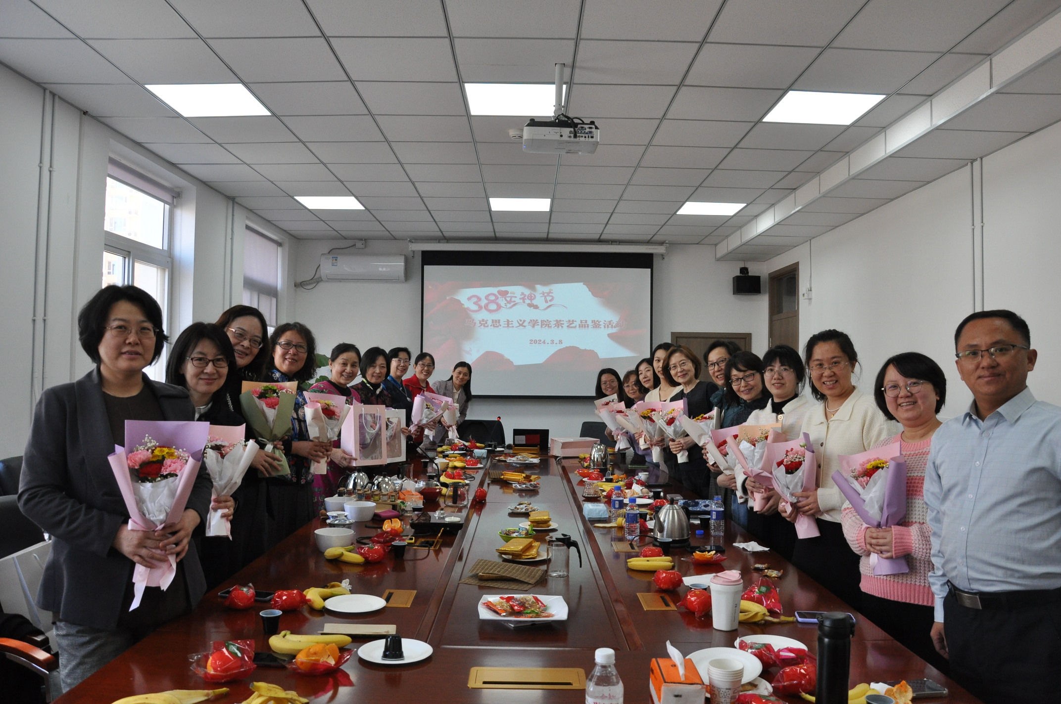活动的最后,学院工会主席郑士鹏为张宏老师和学院女职工赠送鲜花,向大家表达了节日的祝福。