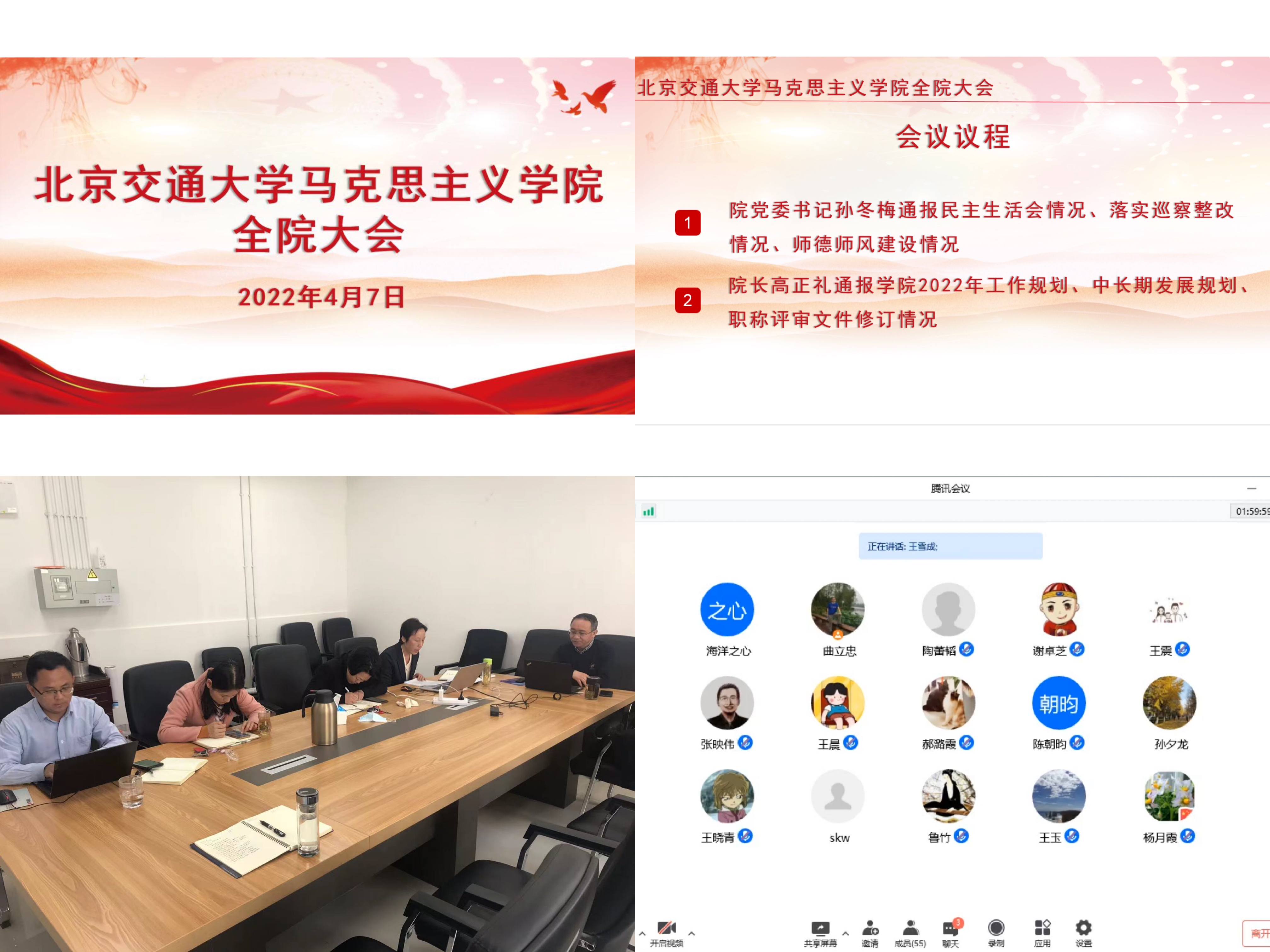 2022年4月7日下午,公司2022年度第一次教职工大会顺利召开,根据学校疫情防控要求,此次会议采取线上线下相结合的方式。院领导班子全体成员及全院教职工参加会议。公司党委副书记、副经理田永静主持会议。