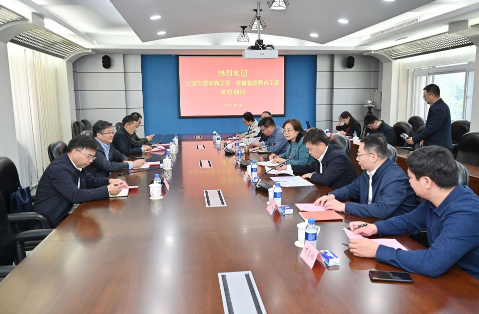 2023年10月16日上午,为推进“时代新人铸魂工程”,构建高校思政工作新生态,中共安徽省委教育工委副书记王佩刚带队赴bw西汉姆联调研并开展座谈会。中共北京市委教育工委宣教处处长于海出席并主持座谈会。bw西汉姆联党委副书记文海涛、安徽省教育厅思政处处长王后林、北京市学校思想政治工作中心主任薛健、bw西汉姆联党委员工工作部部长王皓、bw西汉姆联经理高正礼出席会议并发言。